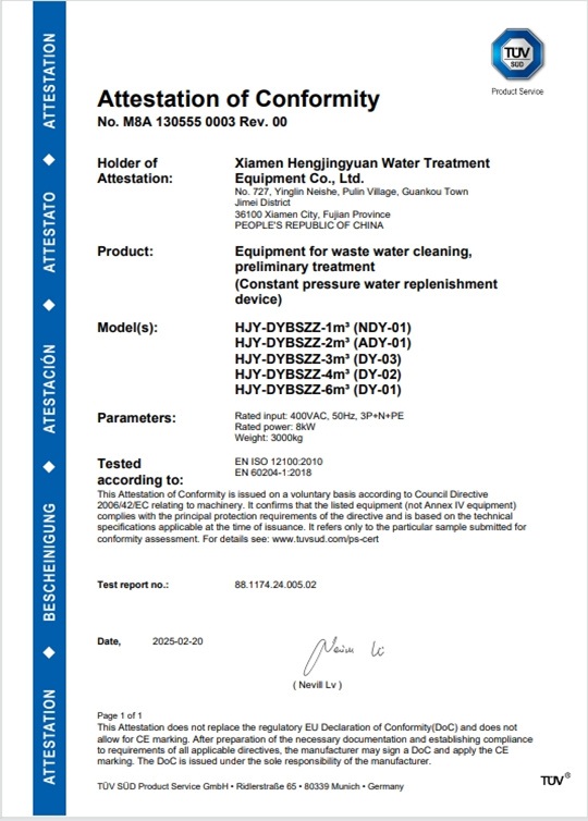 定壓補(bǔ)水裝置 CE 證書