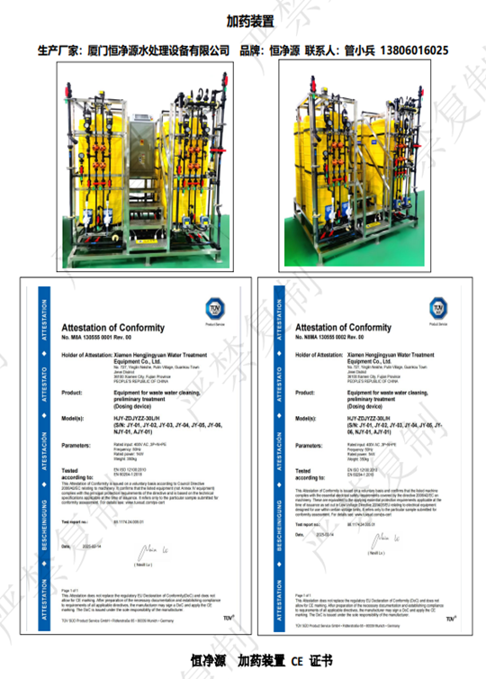 加藥裝置 CE 證書