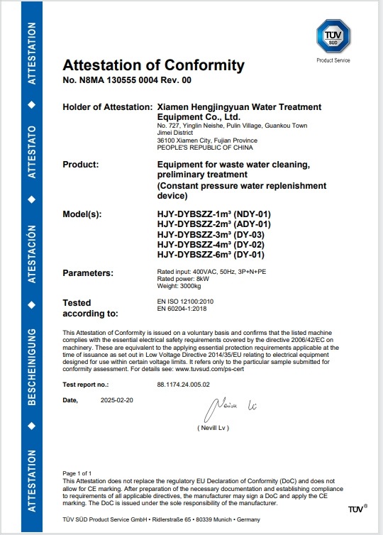 定壓補(bǔ)水裝置 CE 證書